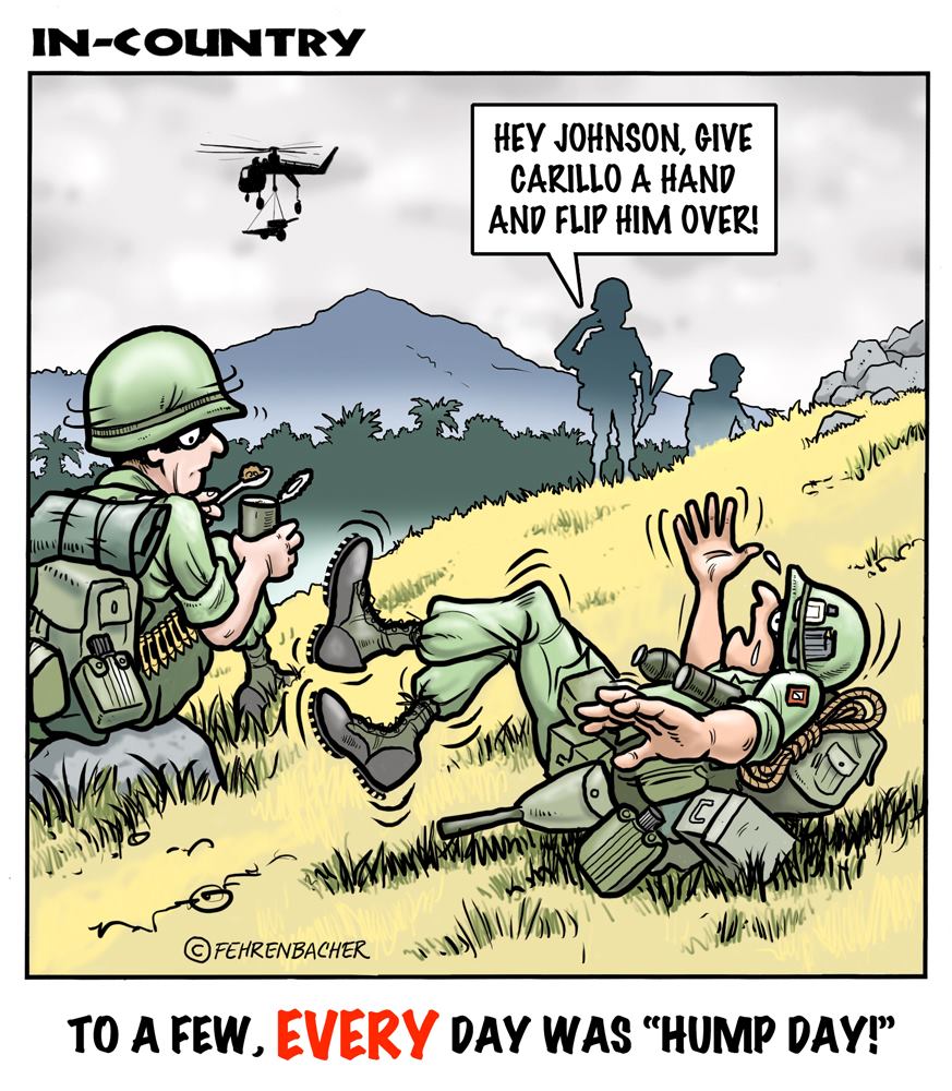 Phil enlisted in the Army in 1965 where you served for years in Vietnam.  He became a graphic designer and has worked for the state of Oregon for 26 years.  He retired in 2003 and started the Cartoon "In-Country".  The cartoons reflect his experiences during his tour of duty in South Vietnam.