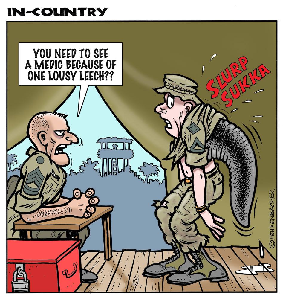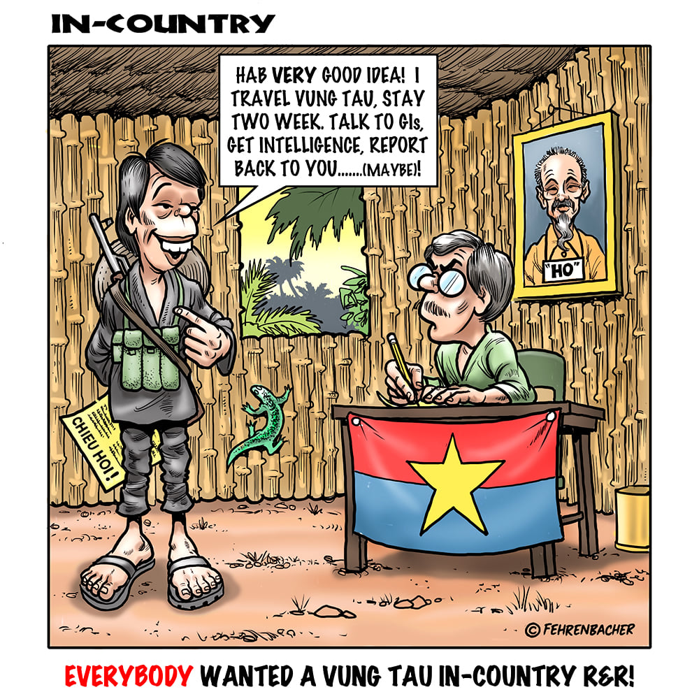 Phil enlisted in the Army in 1965 where you served for years in Vietnam. He became a graphic designer and has worked for the state of Oregon for 26 years. He retired in 2003 and started the Cartoon "In-Country". The cartoons reflect his experiences during his tour of duty in South Vietnam.